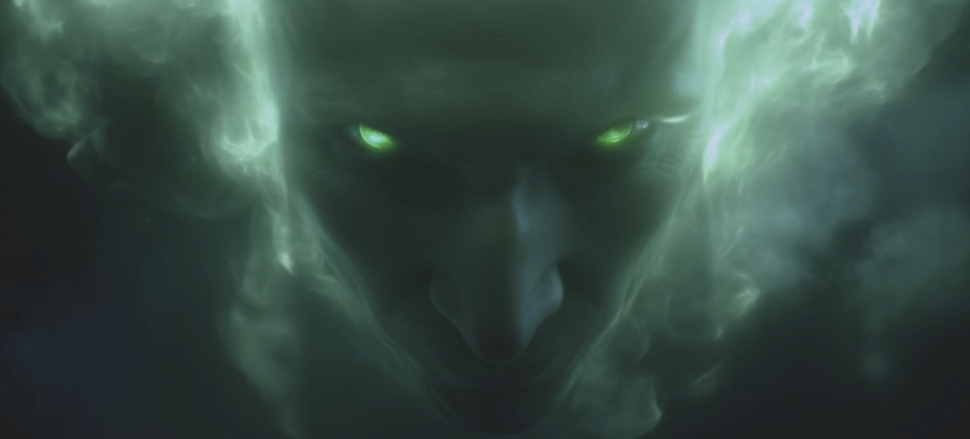 At journey's end, the great and powerful Oz appears as a massive floating head surrounded by swirling emerald fire—regal, spectral, and terrifying. But in this land of wonders, nothing is ever quite what it seems.